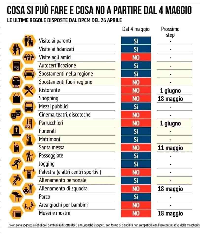Covid-19. Specchietto semplificato di ciò che si può fare e di quello che è ancora vietato in base al nuovo decreto.