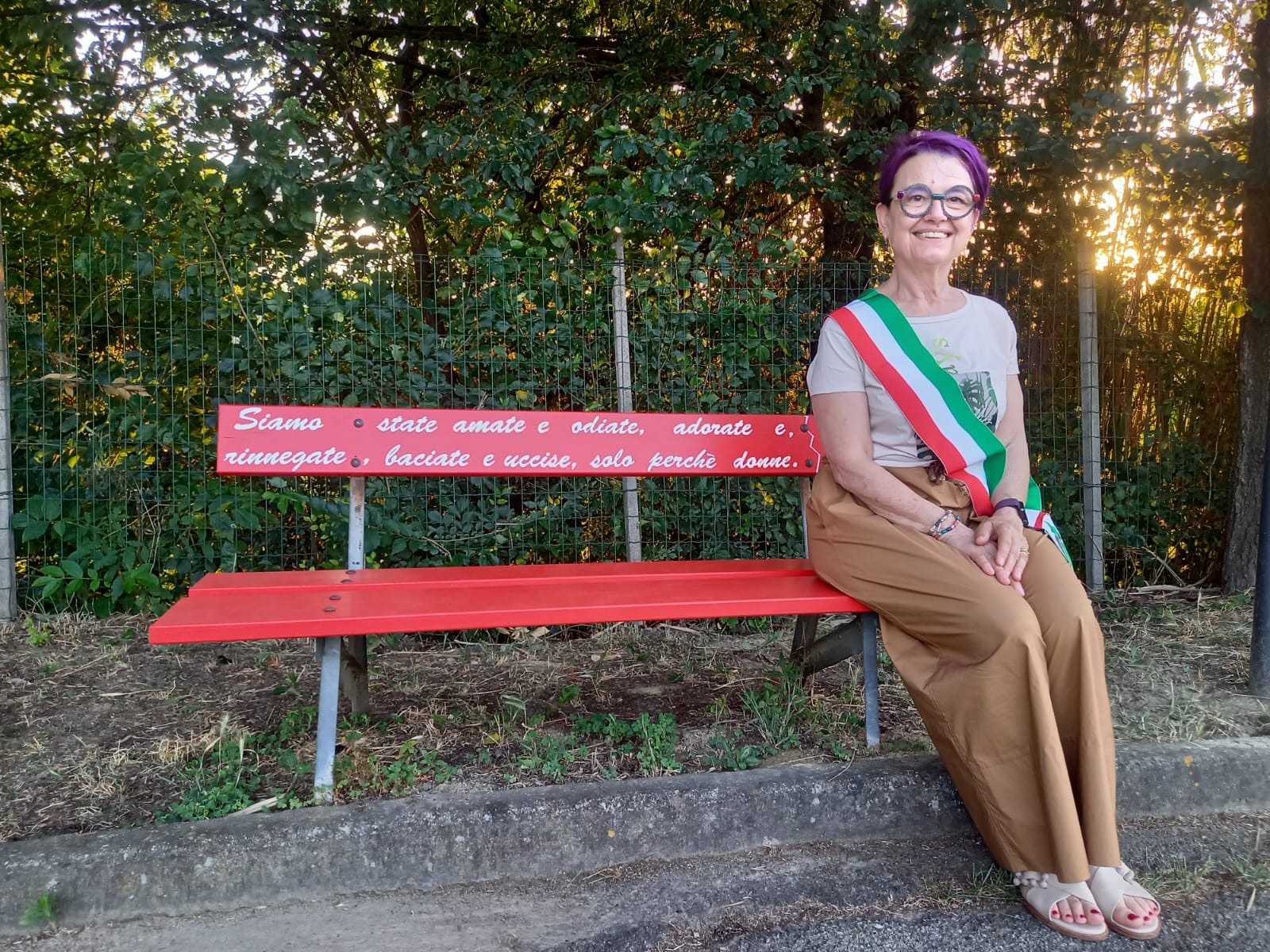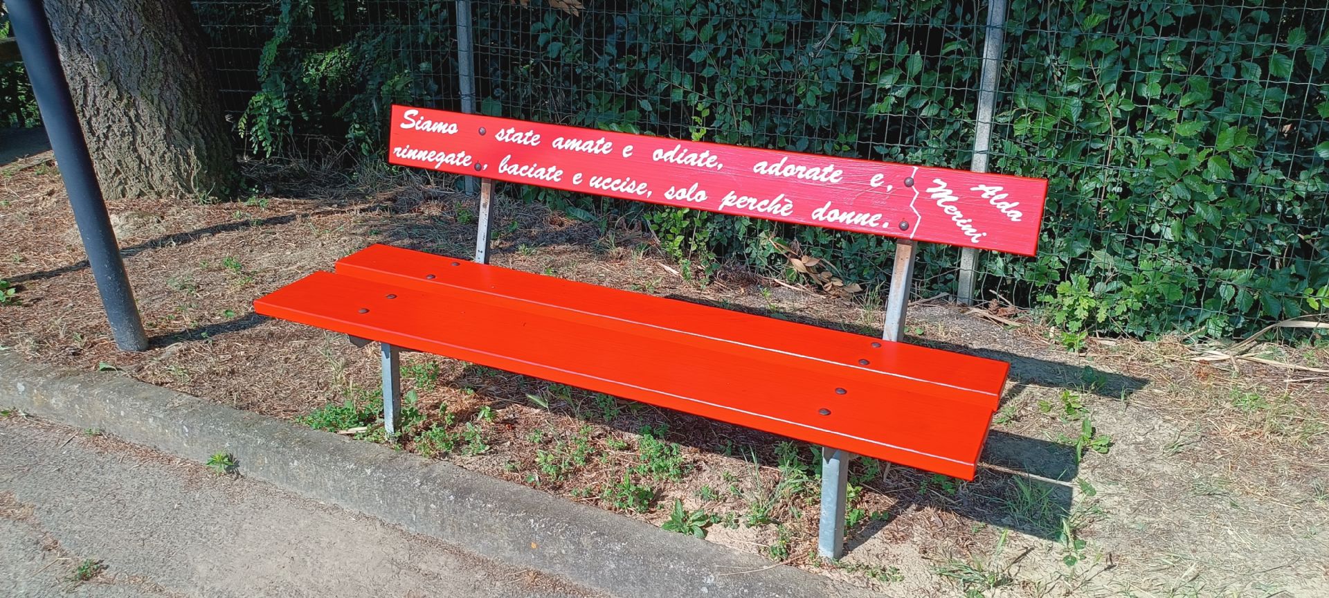 Per questo scopo la panchina è stata dipinta di Rosso acceso e sullo schienale sono state riportate le parole: