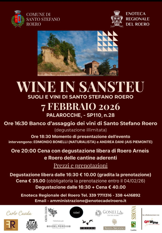 L'Enoteca Regionale del Roero, insieme ai viticoltori di Santo Stefano Roero e al Comune, promuove presso il Palarocche una giornata di degustazione e approfondimento dedicata ai vini del territorio.